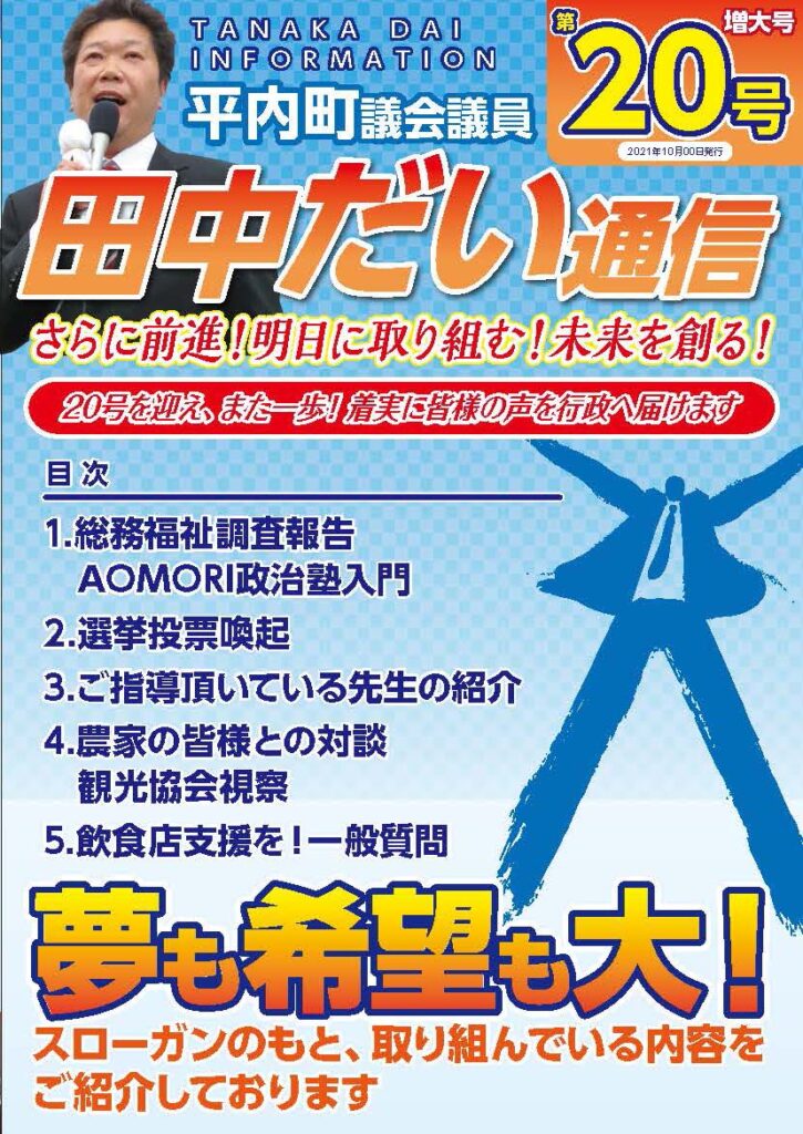 田中だい通信2021年10月号 投稿者: kaz2023年9月12日2023年9月12日田中だい通信 2021年10月号 支援者にお送りしております”田中だい通信”のバックナンバーをこちらに掲載致します画像に変換されたものですので、もし見えにくい方はコチラからPDF版をダウンロードされた方がいいかもしれません 容量は大きくなりますが、PDF版を推奨します blog一覧へ 関連