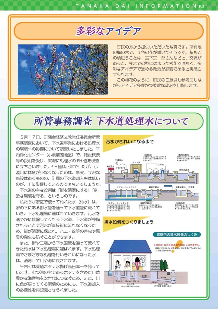 田中だい通信2023年7月号 投稿者: kaz2023年9月12日2023年9月12日田中だい通信 2023年7月号 支援者にお送りしております”田中だい通信”のバックナンバーをこちらに掲載致します画像に変換されたものですので、もし見えにくい方はコチラからPDF版をダウンロードされた方がいいかもしれません 容量は大きくなりますが、PDF版を推奨します blog一覧へ 関連